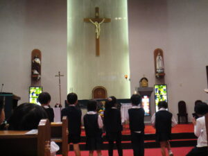 皆、神父様のお話に真剣に耳を傾けます。