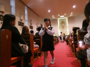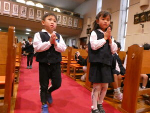 胸にメダイをかけた子は、穏やかで喜びに満ち溢れた表情で、一人ずつ退場します。
