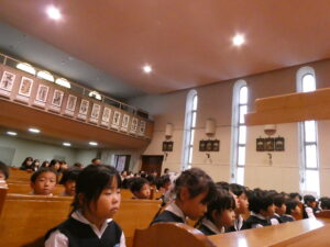 皆で心を合わせ主の祈りを唱え、「神様といつも一緒」を歌い、式が始まりました。