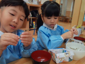 前日、お味噌汁の出汁の準備をしました。