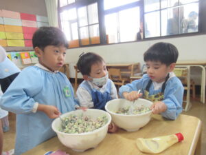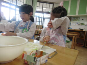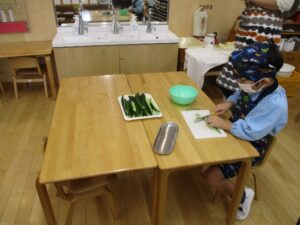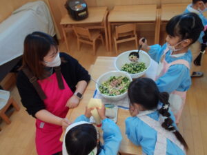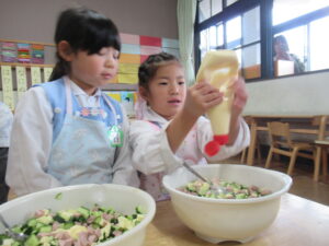 「おいしいサラダできるかなあ」