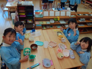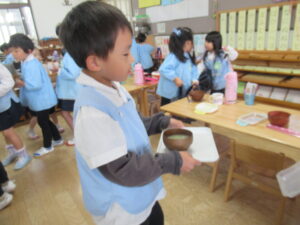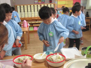 自分の食べられる量を自分たちで配膳します。