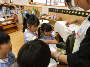 「もう食べたいよー。先生、味見してもいい?」