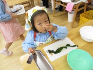 前回のお料理でも経験した、いりこの下ごしらえをよく覚えているようで