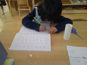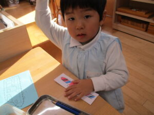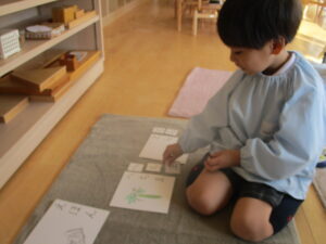絵に文字をつけていきます。同じ文字は見つかったかなぁ?