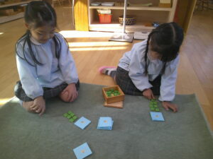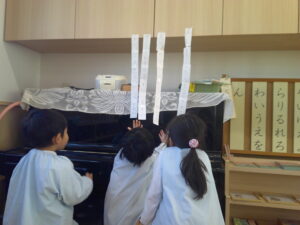 クリスマス会の練習では、年長さんが年少さんを観に行きました。