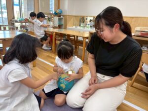 世界を知るお仕事を通して、子どもたちの興味・関心・発見に出会うことができました。これからも、たくさんの学びの種をまき、心が動く活動ができたらいいなと思っています。