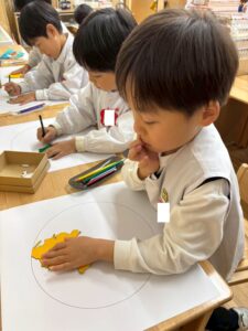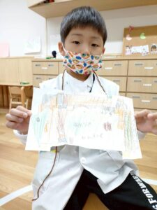 また、各大陸の船に興味を持ち、世界地図の舟の絵を描いた男の子もいました。