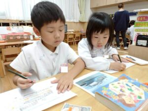 興味の輪がどんどん広がって、お友達と一緒に絵を描いたり、いろいろな大陸の船について紹介したりしていました。