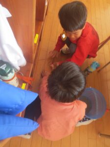 その姿を見て、すぐにバケツと雑巾をもって来てくれた年少児さん。