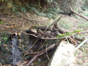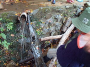 「みずのながれが わるいから き と いし でレールをつくろう!」
