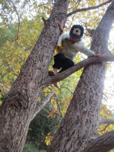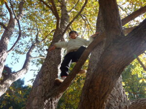 一歩一歩足と手を木のちょうどいいところを探し、登ります。