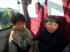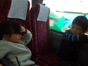 大型バスに乗り込み 胸をわくわくさせながら出発!
