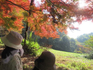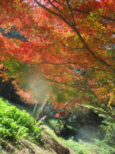 森へ入ると前回来た夏の森とは姿を変え、赤や黄色に色づいた紅葉が一面に。