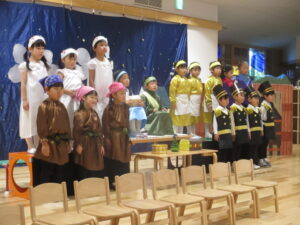 11月からそれぞれの学年で練習が始まり、「天使役になったよ!」「あわてんぼうのサンタクロースを歌うんだ♬」など