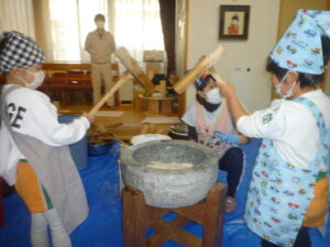 第76回開園記念を祝う餅つきを
