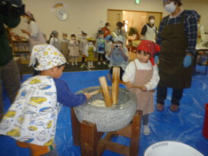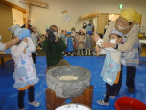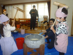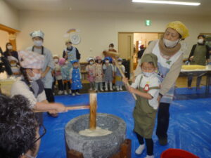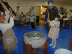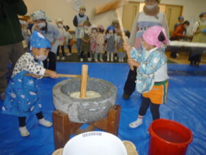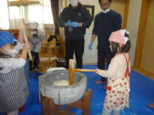園児さん達今日の餅つきを