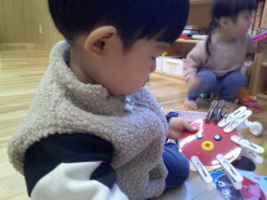 洗濯ばさみを上手につまんで挟めるんですよ🎶