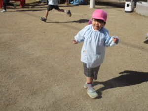 満三歳児さんもいい笑顔で園庭を駆け回ります。