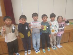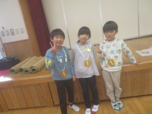 かるたを沢山取った3人にメダルのプレゼント🎁