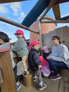 1月でも気温も高い日もあり、外で元気いっぱい遊んでいます!伝承遊びにも興味を持ち、指先を一生懸命動かして挑戦しています!
