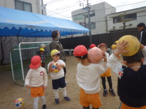 ボールを使って基本練習します。