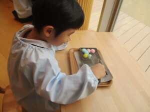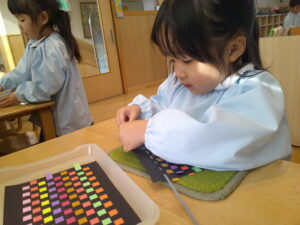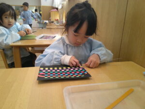 先生と色ビーズ