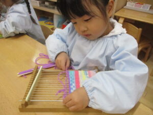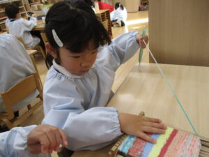 図案機織り、完成間近かな?