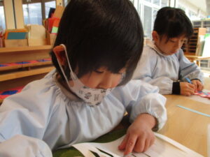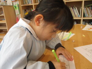 文字を書く姿勢がきれいです!👍