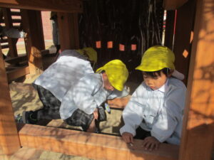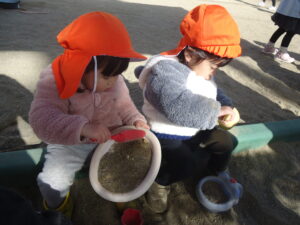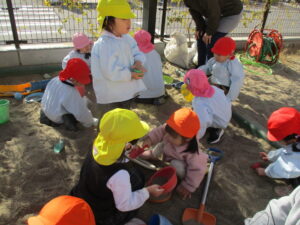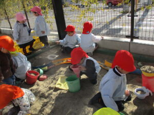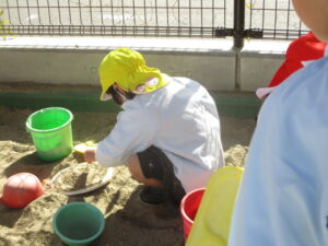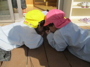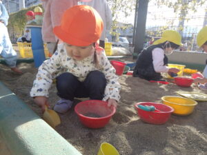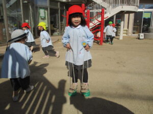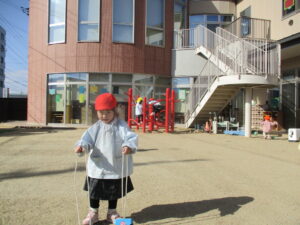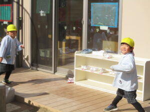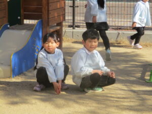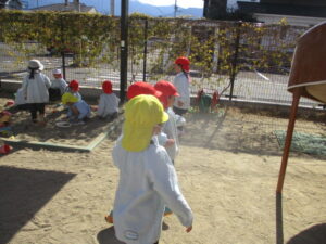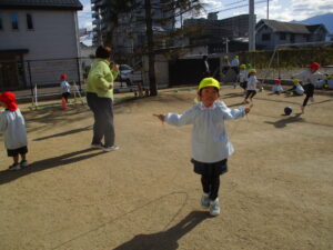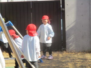 園庭で遊んでいると、暑いくらいになりました。💦