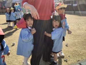 今年も迫りくる鬼に「いい子にしますからぁ!」「先生の話ちゃんと聞くからぁ!」と泣きながら鬼に向かって宣言する子がちらほらいました。