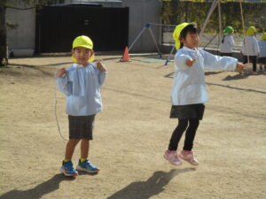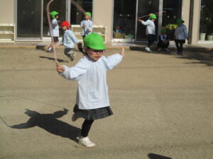 縄跳びの練習を頑張っています。