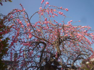 園庭のしだれ梅が満開!