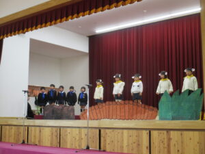 『おおきなかぶ』・『てぶくろ』・『さんびきのやぎのがらがらどん』から好きな物語を選び、自分たちで話し合いをし、役を決めました。