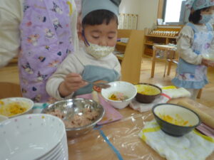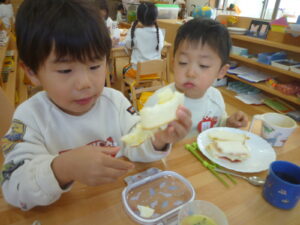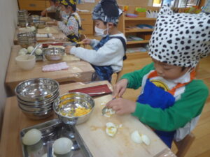卵の殻むきしてね!