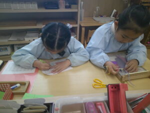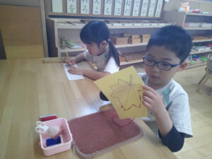 紙に形を、ピッタリ合わせていますね!