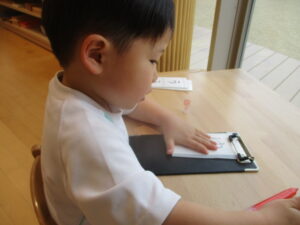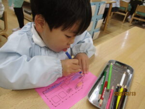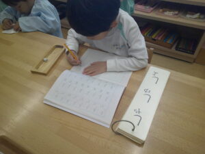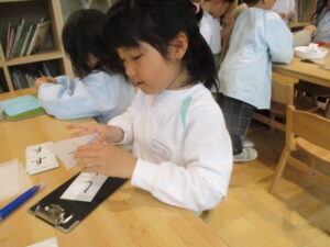 お手本を見ながら「しゃ・しゅ・しょ」丁寧に書いていますね☆彡