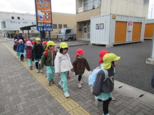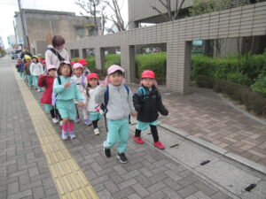 帰りは、大通りを通って「自転車だ!」「ポストがある!」など、周りに何があるかな~♪と見て楽しんで幼稚園に帰りました!