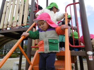 公園で大きな遊具で遊んだり走ったりしていると、みんなポカポカ温かくなり、寒さも忘れていました☺