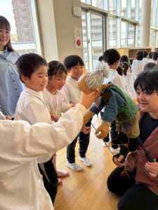 と、思わず声をかける子どもたちの姿もありました。お話の世界に入り込み、思わず助けてあげたくなるような優しい気持ちがあふれていて、とっても微笑ましい反応でした。