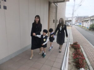 職員でお見送りののち、2025年度卒園児41名は皆