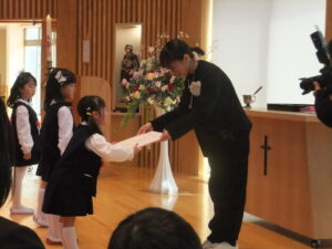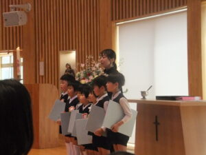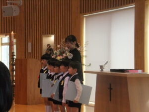 気恥ずかしいような、気持ちが引きしまるような表情の子どもたち。