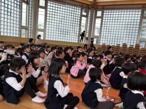 最後に園長先生のお話を聞いて、お祈りをしました。