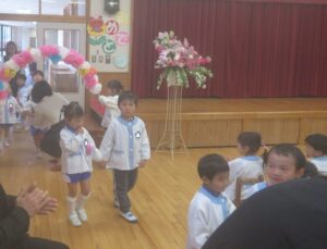 年少さんたちは、年長さんに手を引かれ、