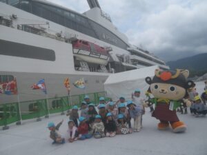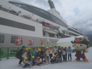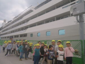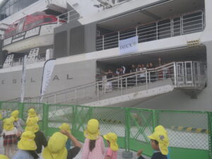 「大きいね~。」初めて見る大型船に目を丸くしていました。