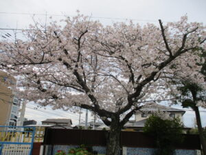 園庭のさくらが満開の中、