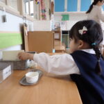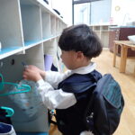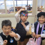 「おはようございまーす!」と久しぶりに制服を着て登園してきた子どもたち。