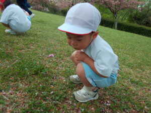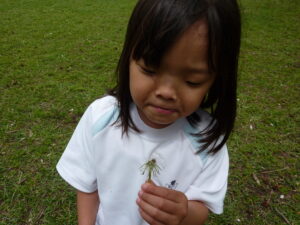こちらの女の子はたんぽぽを見つけたそう。