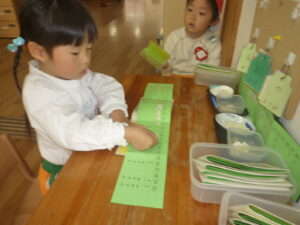 出席カードにシールを貼る