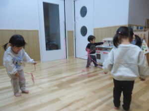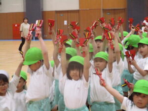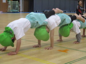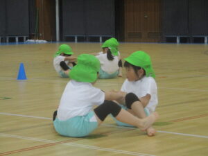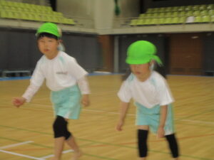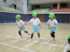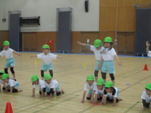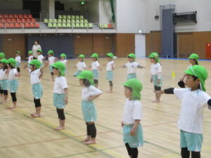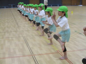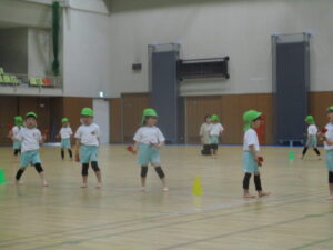 園児と一緒に、保護者の方々も楽しく、身体を動かしてください。